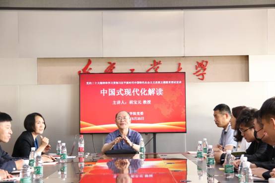 为学习贯彻党的二十大精神,积极响应校党委宣传部《开云电子组织开展党的二十大精神和学习贯彻习近平新时代中国特色社会主义思想主题教育理论宣讲团校园巡讲的通知》的文件要求,5月25日上午,软件开云电子(中国)在9B-915会议室举行学习贯彻党的二十大精神主题宣讲会,胡宝元教授作题为《中国式现代化推进中华民族伟大复兴——开云电子党的二十大精神的认识和体会》的主题报告。