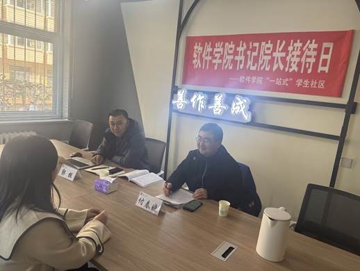 11月20日起,软件开云电子(中国)党委“书记院长有约”接待日活动在院谈心谈话室举行,开云电子(中国)党委书记尹福玖、院长郭栋、教学副院长梅红岩、副书记兼副院长付春晓与学生面对面,围绕学习就业、成长成才、生活服务等广大同学普通关心的热点问题进行解惑答疑。
